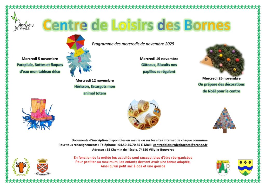 (uniquement aux heures d’ouverture du centre – Ne pas laisser de message sur le répondeur) - E-Mail : centredeloisirsdesbornes@orange.fr