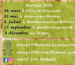 Marché de l’AMAP des Bornes Les 2 juillet et 17 septembre nous aurons le plaisir de recevoir de nouveau le Marché de l’AMAP des Bornes sur la place du village Vie économique Partager Tweeter Partager Email